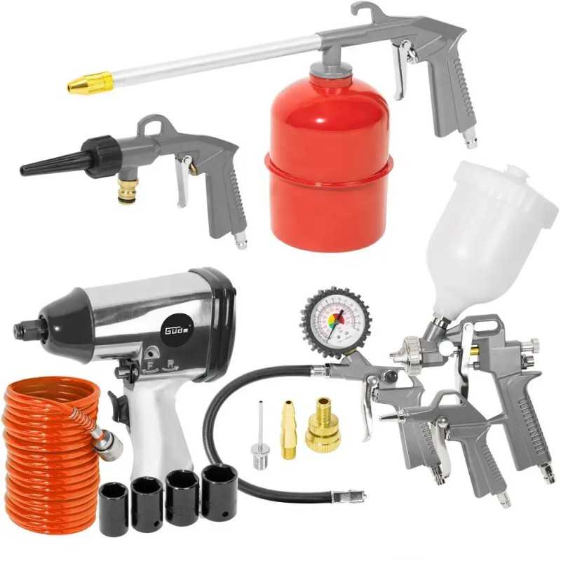 Kompressoren er velegnet til værkstedet med sin store 50 L kedeltank og 10 bar maks. tryk. Og så kommer den med en kæmpe pakke med trykluftpistoler, ventiler, slagnøglesæt og 5 m spiral slange. Alt hvad der er behov for til selv de store projekter.