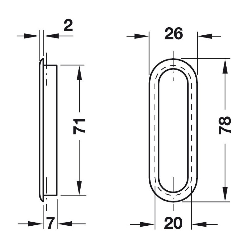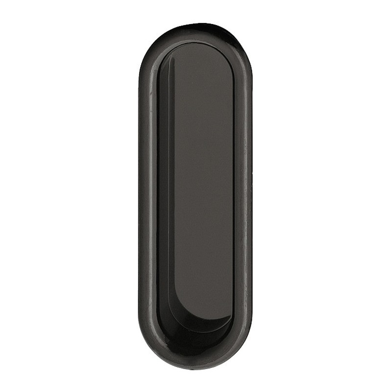Oval skålegreb i sort kunststof. Skålegrebet monteres med lim.