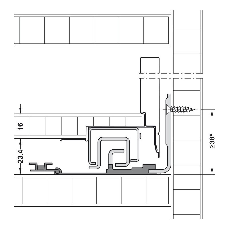 Der er ikke behov for ekstra plads under skuffen eller ekstra skuffe- og korpusbearbejdning for at installere stabiliseringen.