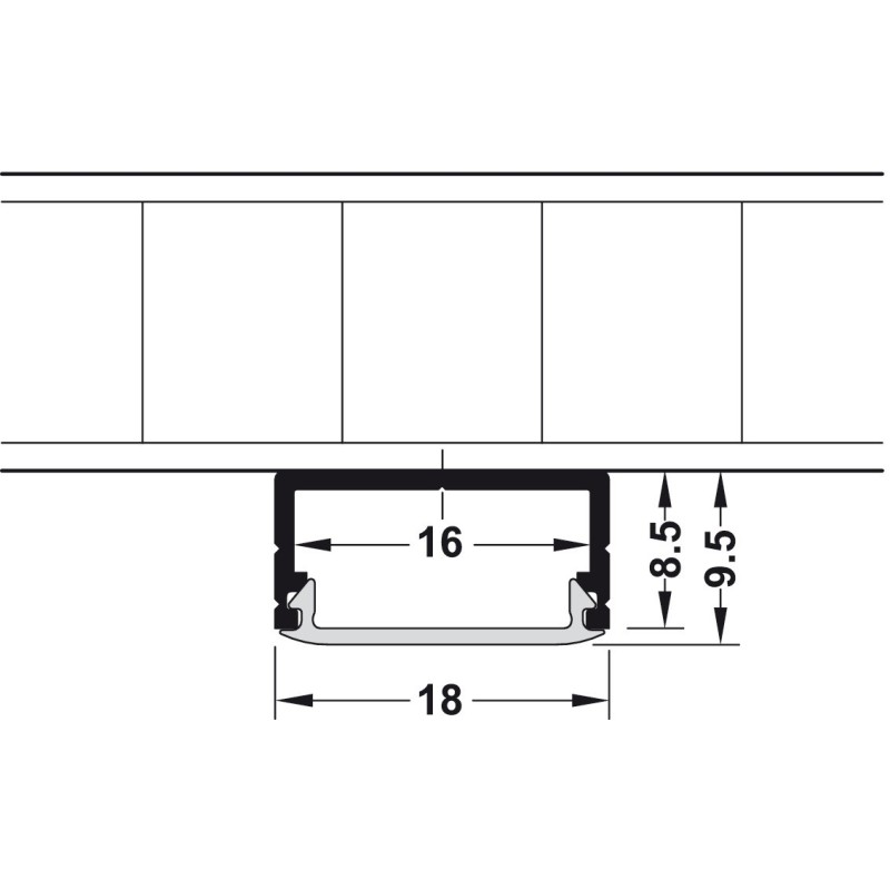 Aluminium profil til Häfele Loox LED-bånd med en bredde på 10 mm.