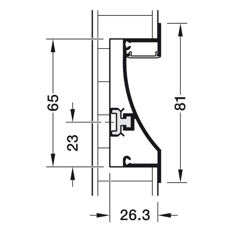 Montageplade til Häfele Loox aluminium sokkel profil 5103.