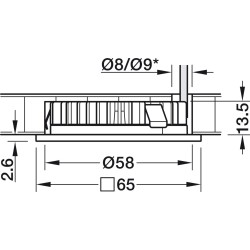 Firkantet rosette i stål som passer til Loox5 LED-lys 2025, 2026 og andre modulære LED'er, som har en diameter på Ø 65 mm