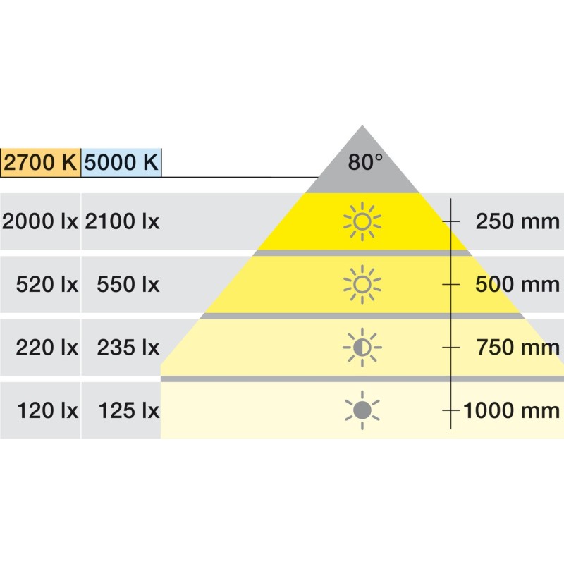 - Levetid L80/B10: >50.000 timer