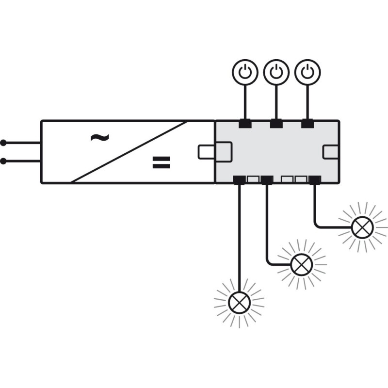 Tænd via kontakt 1, 2 eller 3. For at slukke skal der igen trykkes på alle tændte kontaker.