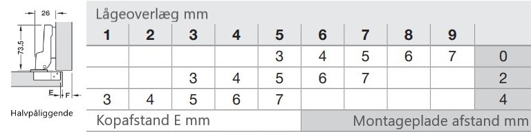 Du kan læse meget mere om hvordan du finder det rigtige type hængsel og hvordan du finder afstanden på din montageplade her: Vejledning i hængsler