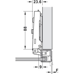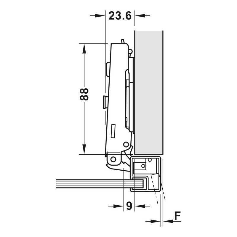 Hængslet er det helt nye i hængsler fra Häfele, og denne model er lavet til aluminium rammer til smalle låger fra 19 til 24 mm tykkelse.