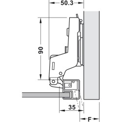 Häfele Metalla 310 A/SM 110° hængsel til skabslåger med aluminium rammer til glas.