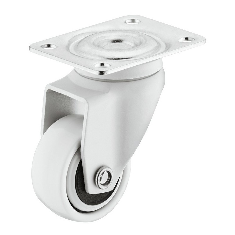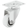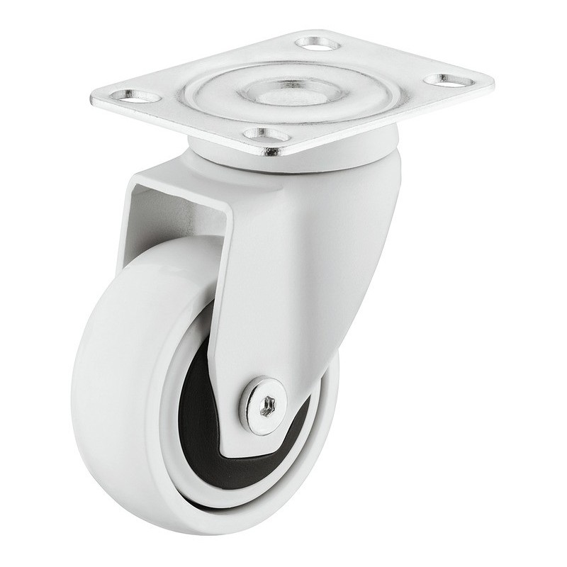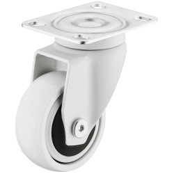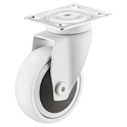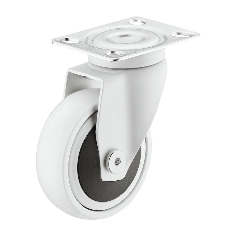 Lækkert styrbar hjul i industristål og termoplastik gummi, som dermed giver en blød løbeflade. Dette hvide hjul er styrbar og kommer med montageplade