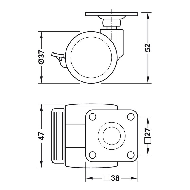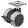 Pænt og simpelt hjul i sort og grå kunststof med et hus i stål. Dette hjul er styrbar og kommer med bremse og montageplade.