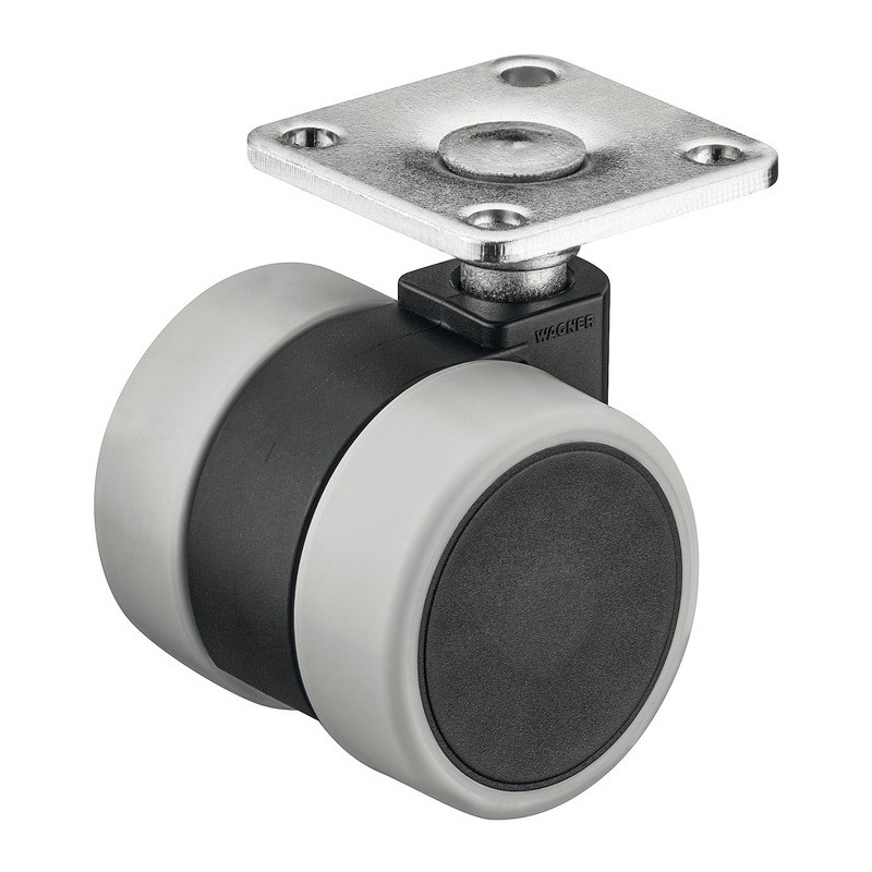 Pænt og simpelt hjul i sort og grå kunststof med et hus i stål. Dette hjul er styrbar og kommer med montageplade.