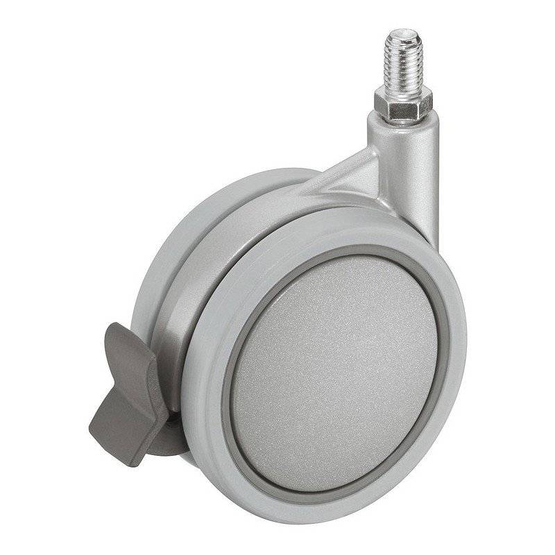 Dette hjul er styrbar og kommer med bremse og gevindtap M10 x 15 mm. Det er særlig egnet til stuemøbler og ikke til erhvervsmæssig brug.
