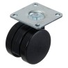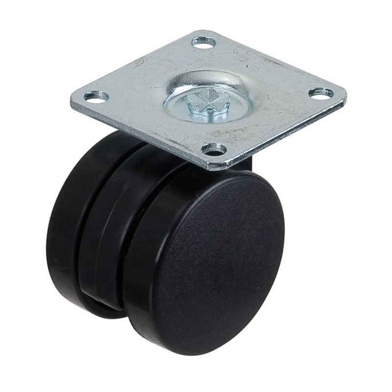 Pænt og simpelt hjul i sort kunststof uden plastikskærm, der skal monteres med montageplade. Dette hjul er styrbar og kommer med montageplade.