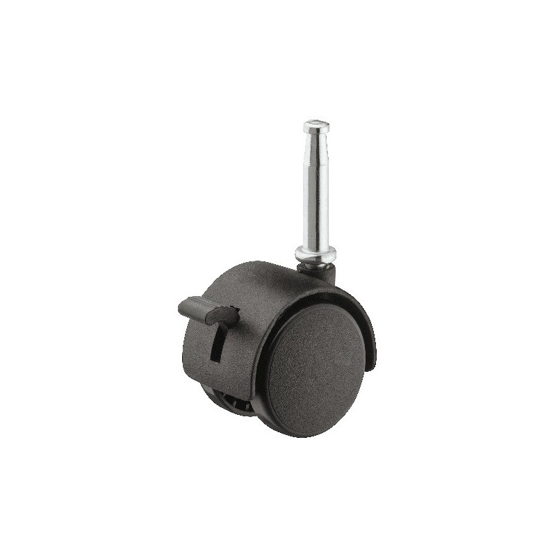 Klassisk og simpelt hjul i sort kunststof med plastikskærm. Dette hjul er styrbar og kommer med bremse og ipresningsbøsning.