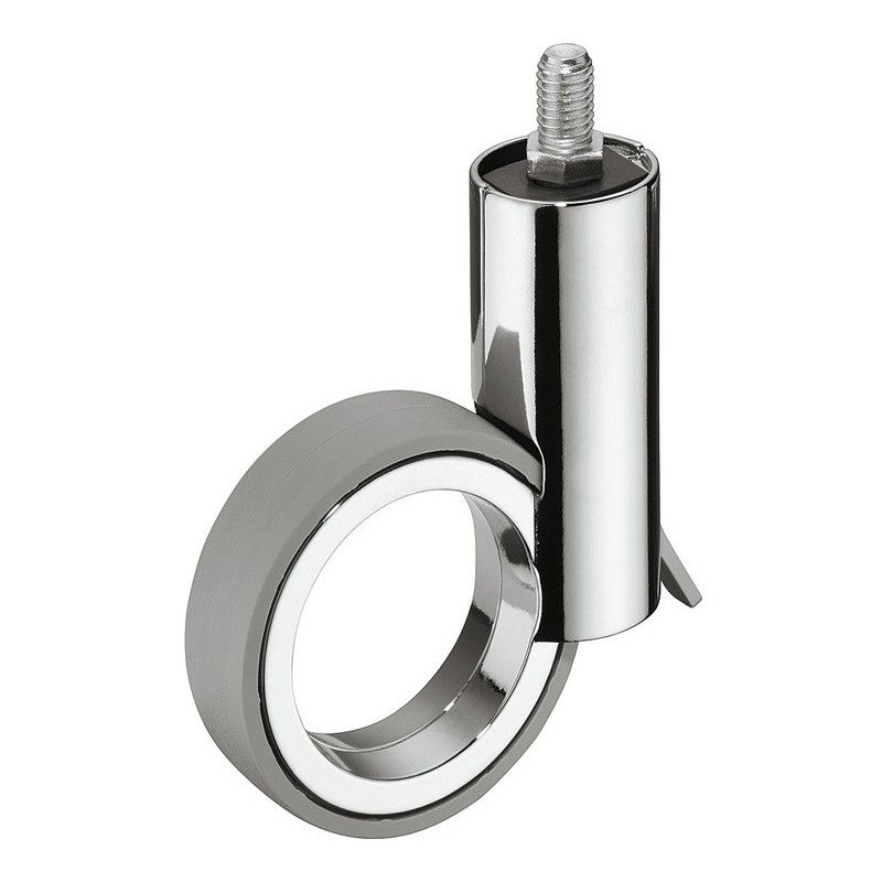 Møbelhjul i et flot minimalistisk design med stort hul i midten. Dette hjul er styrbar og kommer med bremse og gevindtap M10 x 15 mm.