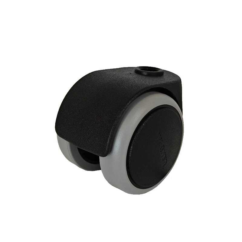 Pænt og simpelt hjul i sort kunststof med sort skærm. Dette hjul er styrbar og kommer UDEN montagestift