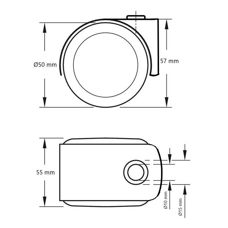 Dette hjul fås med en bæreevne på 50 kg. Når man regner bæreevnen ud på sit møbel, er en god tommelfingerregel at 1/3 af møblets vægt svarer til bæreevnen per hjul.