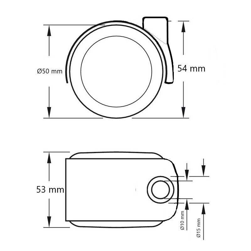 Dette hjul fås med en bæreevne på 50 kg. Når man regner bæreevnen ud på sit møbel, er en god tommelfingerregel at 1/3 af møblets vægt svarer til bæreevnen per hjul.