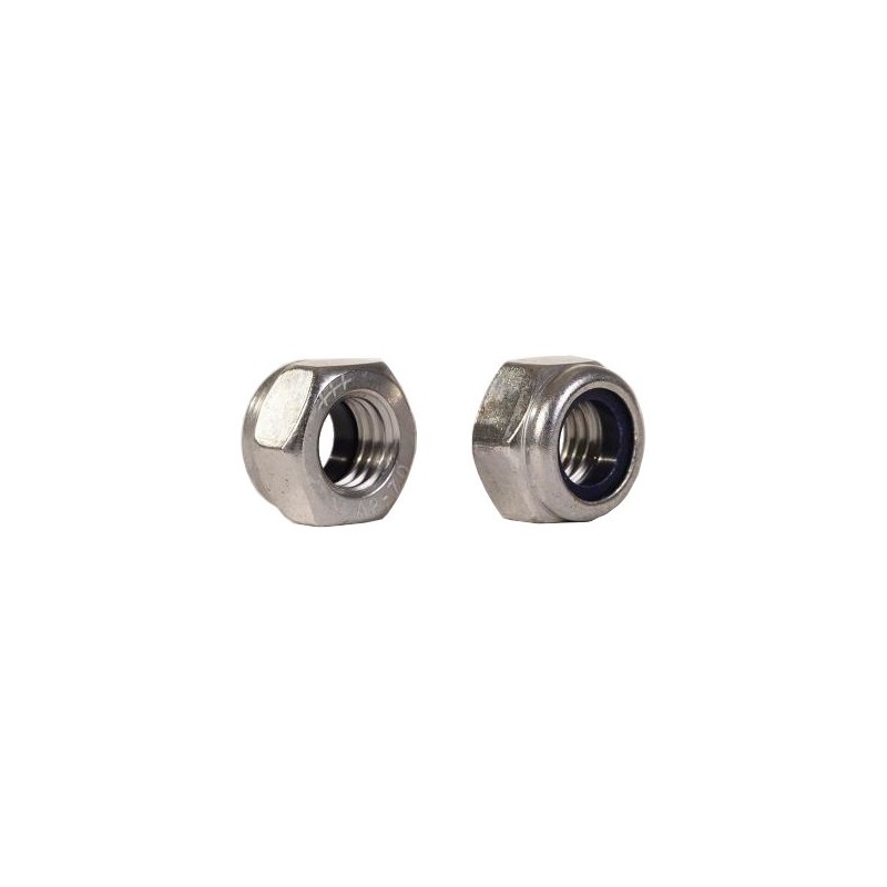 Låsemøtrik med nylonring og M4 gevind lavet i rustfrit stål (A2, kvalitetsklasse 70). Holdbar møtrik som passer til M4 gevindstænger eller gevindskruer. Nylonringen giver ekstra fastholdelse til møtrikken.
