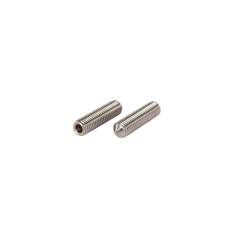 Pinolskrue med krater, spids og M8 gevind. Lavet i A2 rustfrit stål. ISO 4027 / DIN 914
