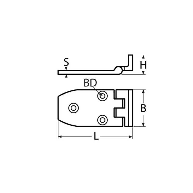 Lugehængsel i syrefast rustfri stål A4, med forkrøbning egnet til forskellige anvendelser på båd.