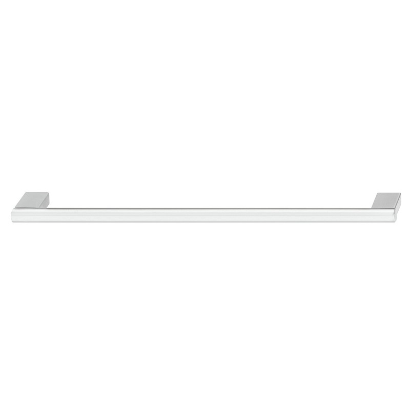 Rundt greb i mat børstet rustfri stål med firkantet sokler i zinklegering. Dette greb passer godt til skuffer eller låger.