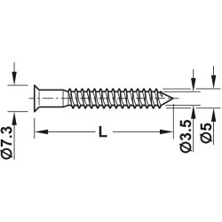 Denne samleskrue har et torx (IS) 20 hoved på Ø7,5 mm, og et ydre gevind på Ø5 mm