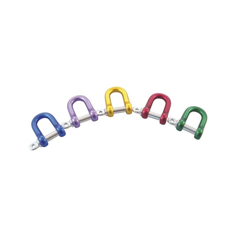 D-sjækel i farvet alu, med almindelig arm der skrues i gevind.