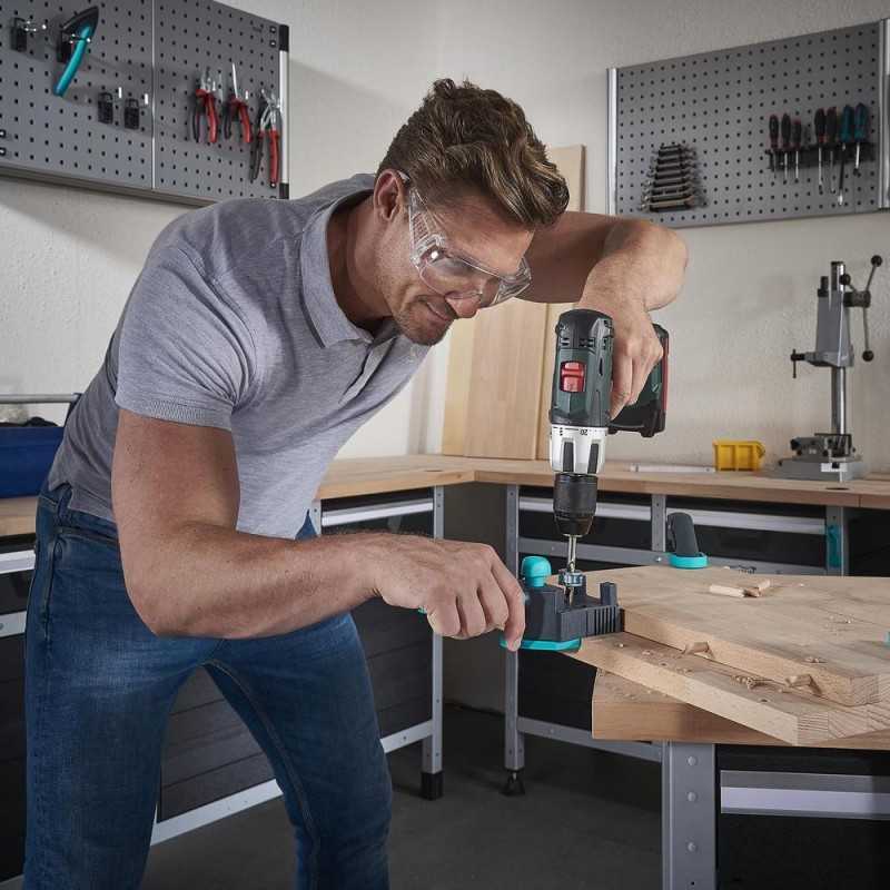 Borelæren er lavet af en høj kvalitets og stødresistent plastik stål boreguides med et ergonomisk formet håndtag.