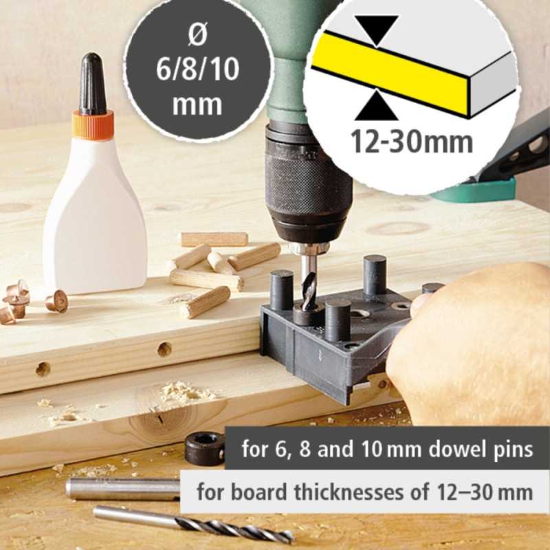 Perfekte dyvel samlinger helt fra star, helt uden behov for ekspertviden. Dowelmaster gør det nemt at bore ud til præcise og snorlige hjørnesamlinger, længdesamlinger m.m. uden problemer ved hjælp af det justerbare stop, to centrerings bolte og tre intergrerede boreguides.