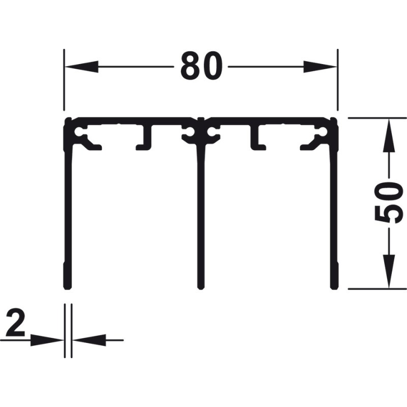 Dobbeltstyreskinne til påskruning. Skinnen passer til Häfele Slido R-Aluflex 80A / 80W og har en højde på 50 mm