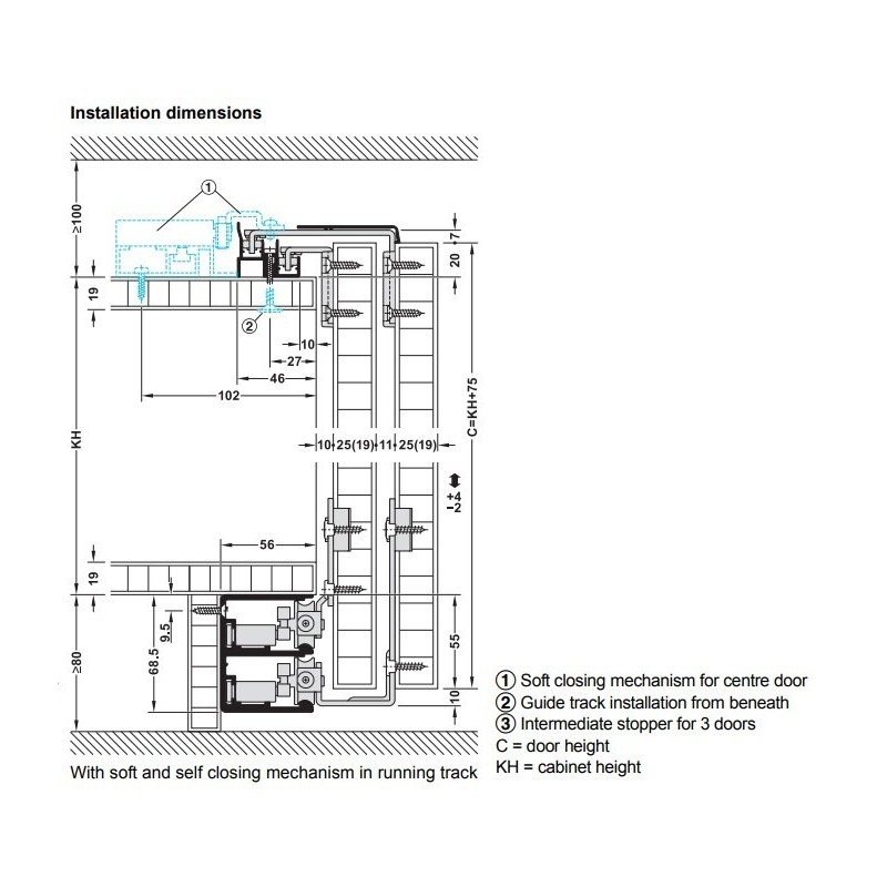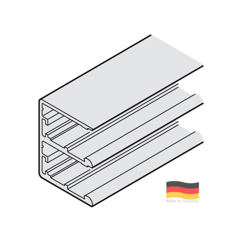 Dobbeltstyreskinne til Hawa skydeskabsbeslag i serierne MF og VF. Denne løbeskinne bruges til versionen af Hawa 50 H VF og MF hvor der skal tilføjes soft-close mekanisme (lukkedæmpning).