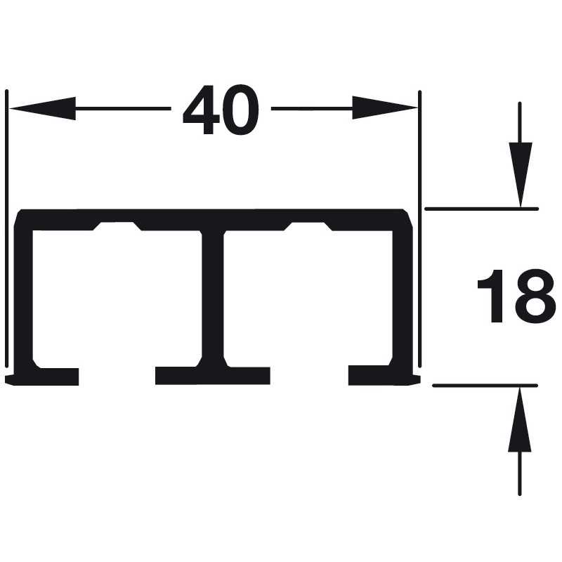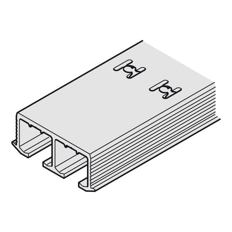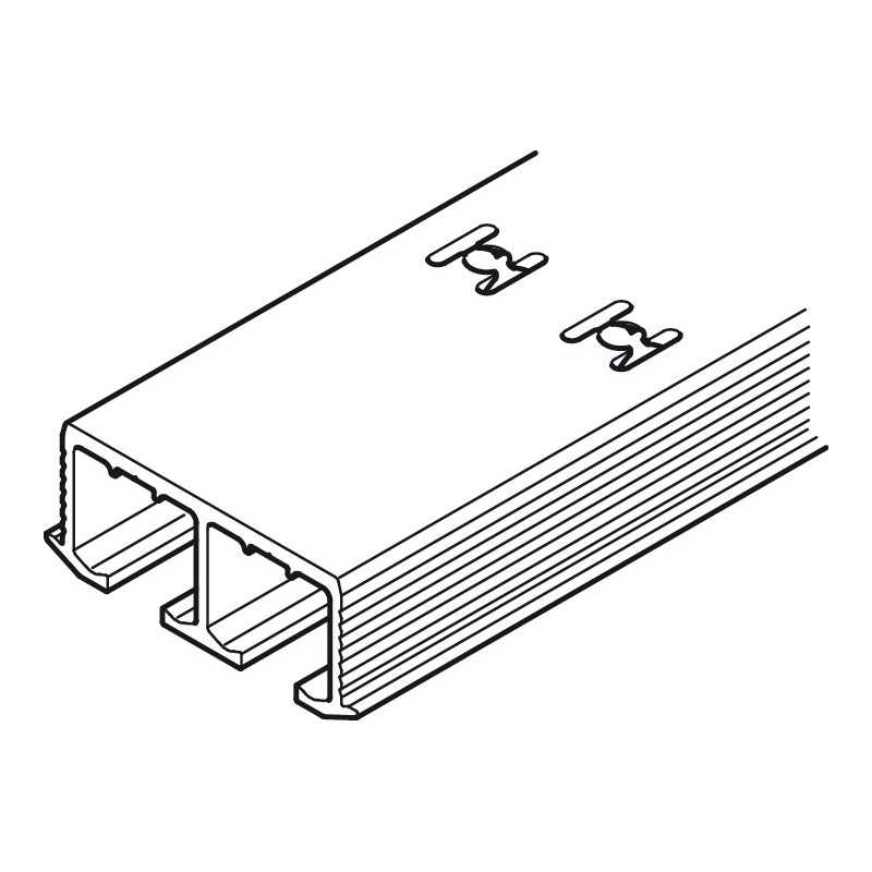 Dobbelt løbeskinne til Hawa skydeskabsbeslag Clipo 36 GPK/GPPK. Styre- og løbeskinne er nødvendige for at skydeskabssystemet fungerer. Find selve skydeskabsbeslaget i tilbehør.