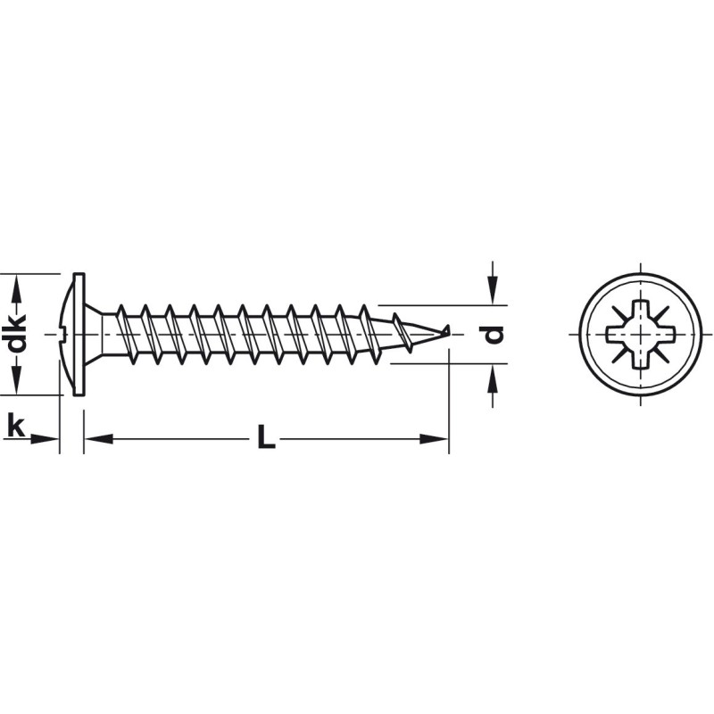 Fladhoved skrue med med krydskærv PZ1 i galvaniseret stål