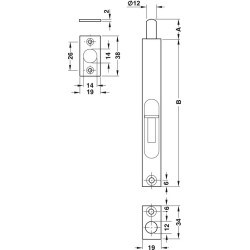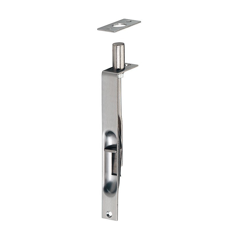 Denne model er beregnet til skjult montering i en trædør, og skal indsættes i en indfræsning. Skudriglen låses let ved at skubbe tappen op eller ned.