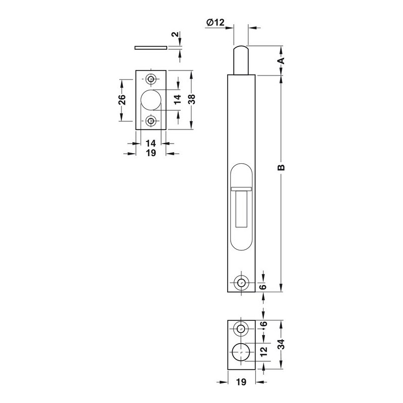 Simpel skudrigel til døre. En simpel låsemekanisme, hvor den lille rigel skydes ind i låseblikket.