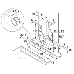 Sekretær hængsel i forstærket udgave, til brug ved ekstra tung belastning.