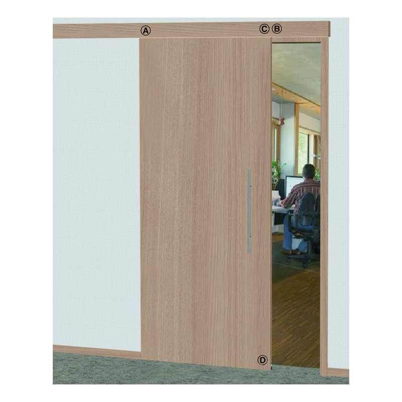 Passer til skydedøre af træ, der løber foran væggen.