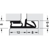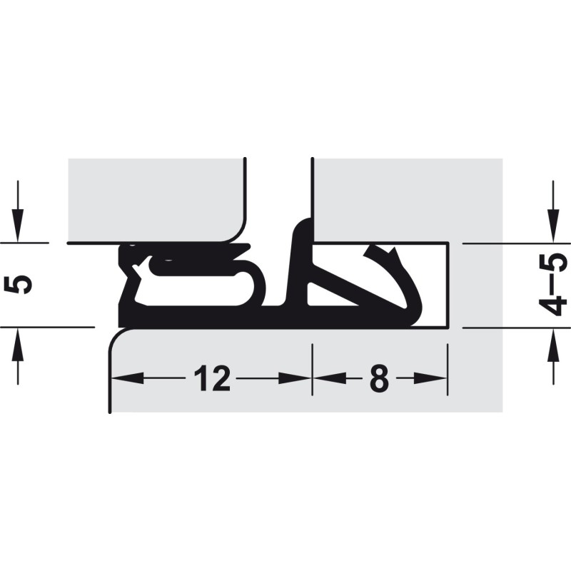 Lavet i tværbundet silikone. Passer til døre med en falsningsbredde på 12 mm. Puttes i en fræsning på 4x8 eller 5x8 mm.