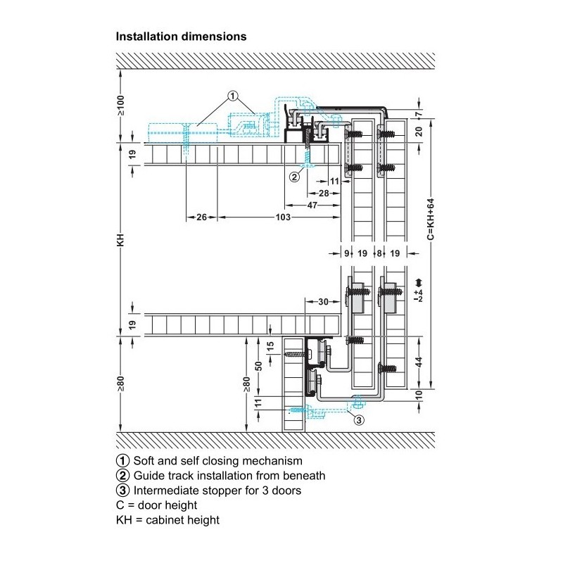 Mekanismen skal bruge et adapter sæt for at kunne sættes på skydedørsbeslaget. Denne finder du i tilbehør.