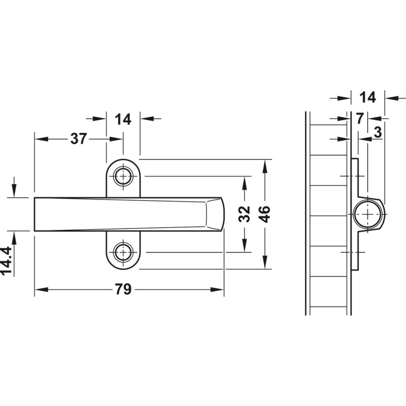 Adapterplade til standard tryksnapper, så du slipper for at bore den ind i enden af skabssiden, men kan skrue den på siden i stedet.