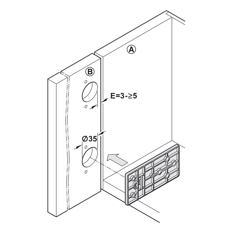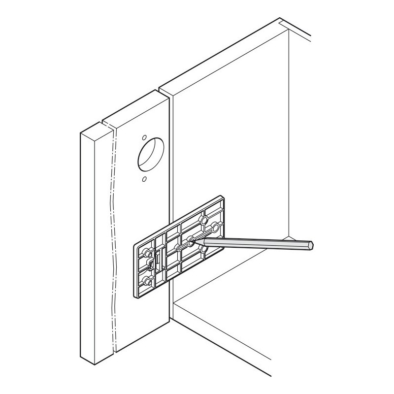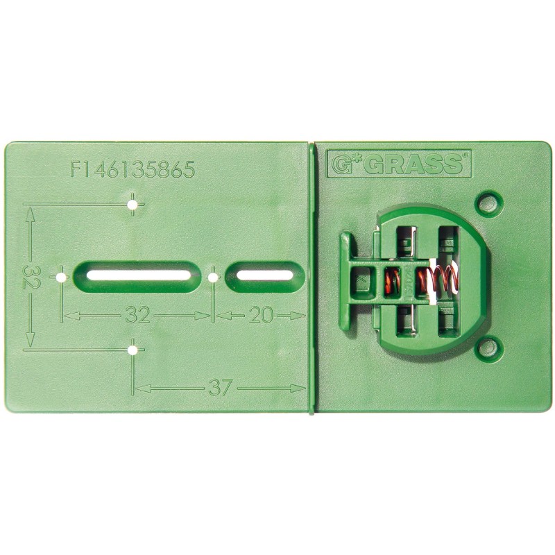 Boreskabelon til montering af Grass Tiomos kophængselserien. Anvendelig til kopafstand inden for 3-5 mm.