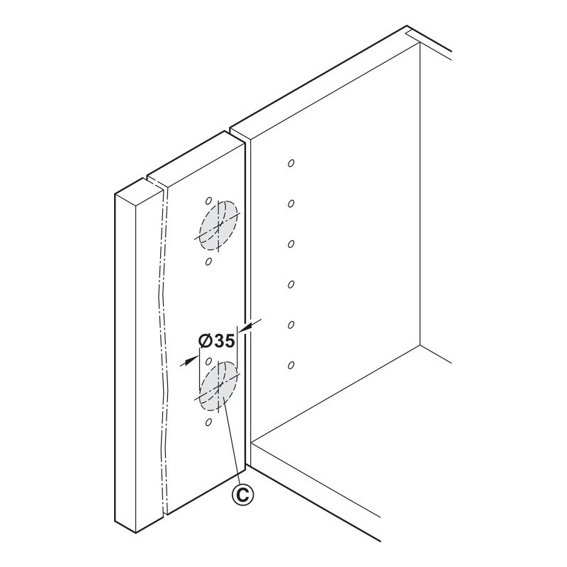 En borelære/boreskabelon kan bruges til at sikre positionen af hængslet, således at du får et korrekt, professionelt resultat hver eneste gang.
