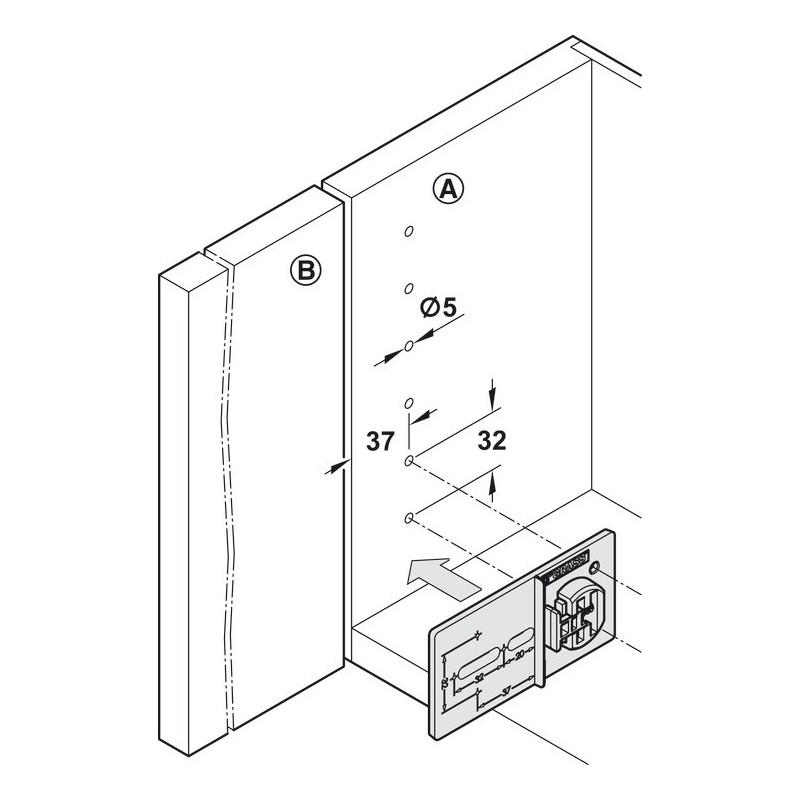 Boreskabelon til montering af Grass Tiomos kophængselserien.