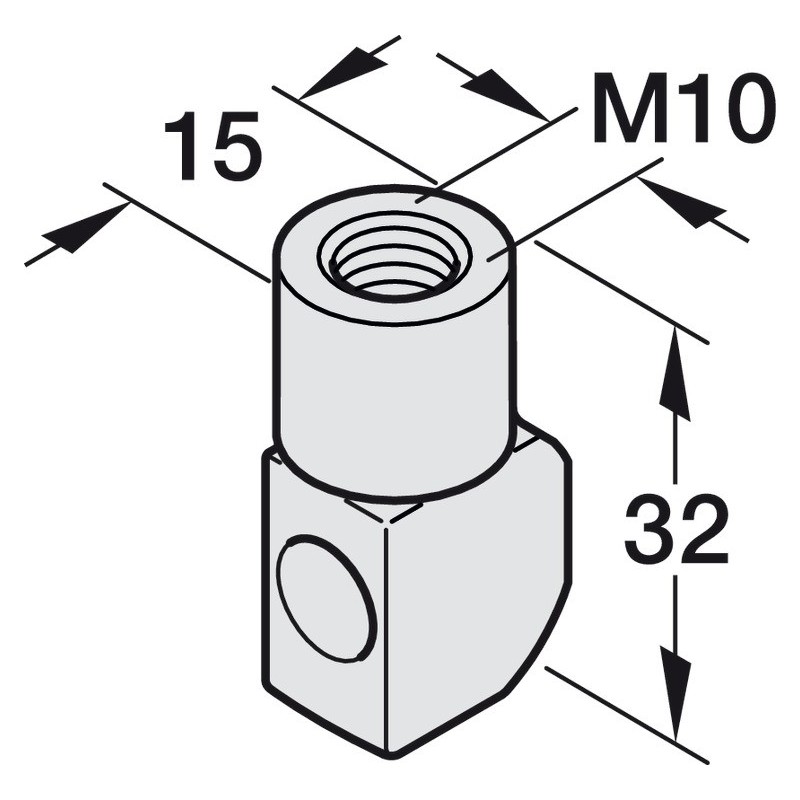 Forbinder til gevindstang M10. Bruges til at forbinde stangen med låsebeslagene.