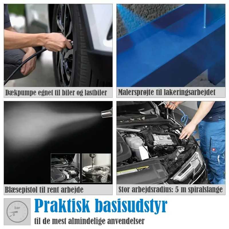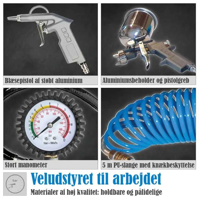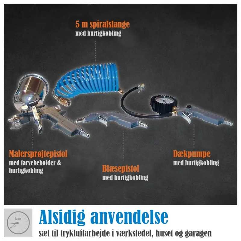 Denne pakke med høj kvalitets trykluft udstyr samler alt hvad du skal bruge i værkstedet ét sted.