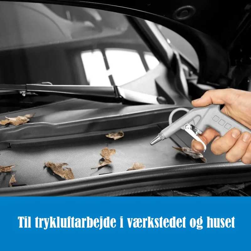 Blæsepistolen er ligeledes lavet af aluminium og egner sig til at holde arbejdspladsen eller projektet frit fra støv, selv på besværlige steder.