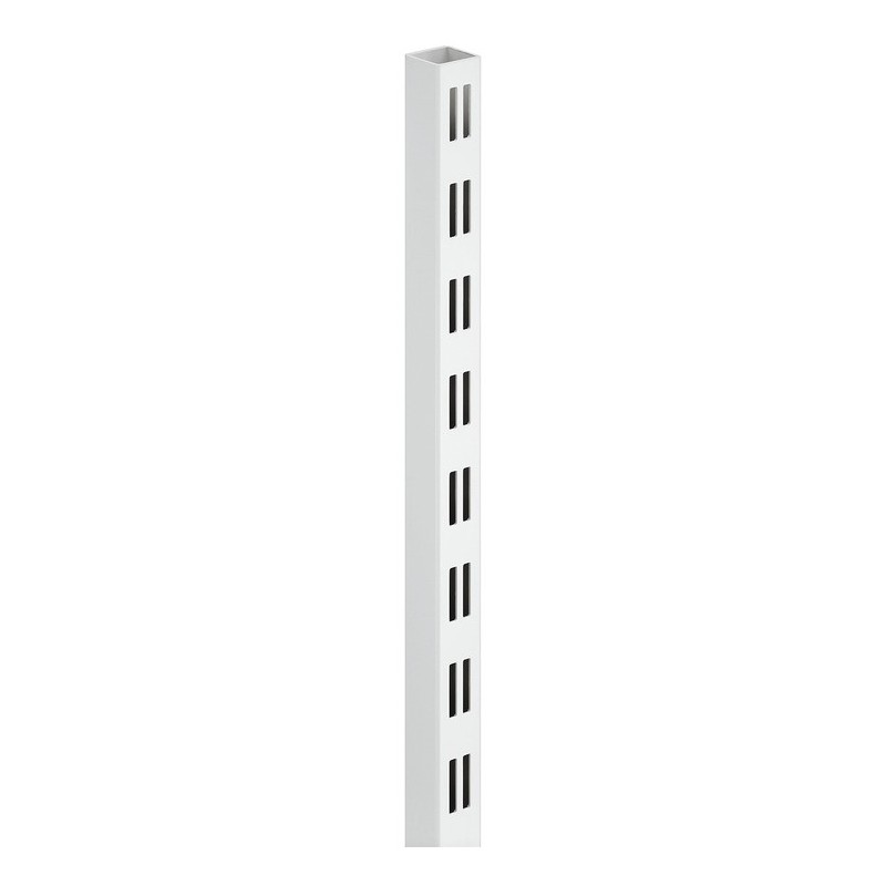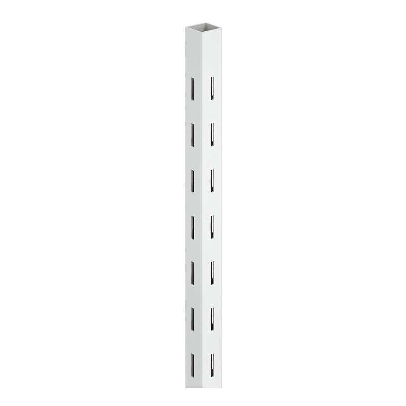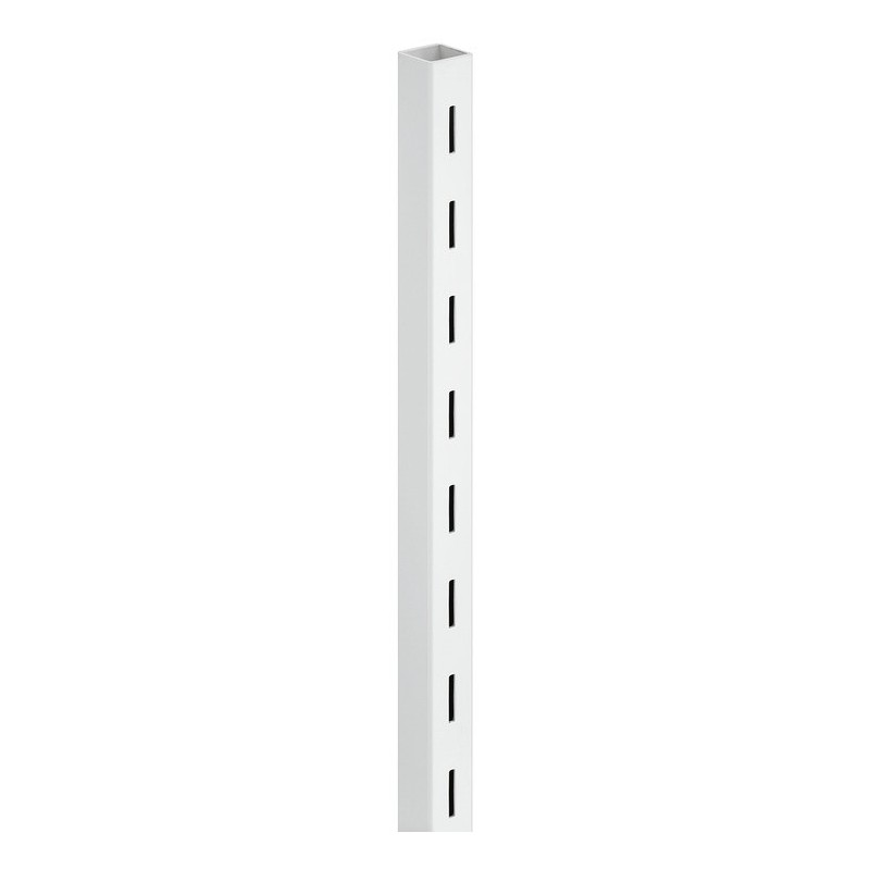 Firkantet søjle 30 x 30 mm til vores smarte byg-selv-reolsystem. Skinnen er produceret i stål og har en  pulverlakeret hvid overflade.
