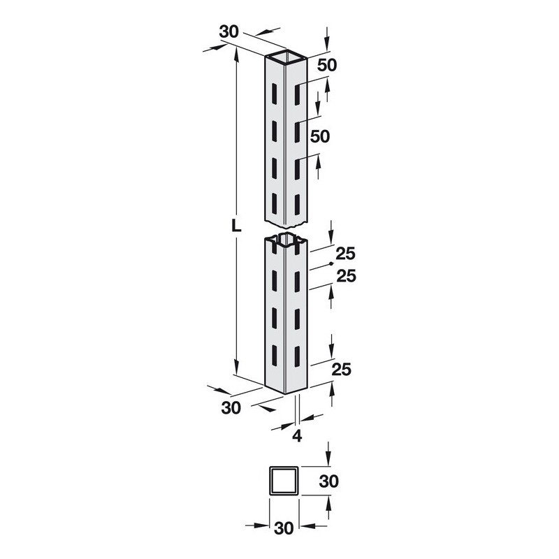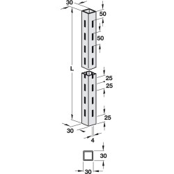 Søjlen fås med hulller i 1 række på 2 sider, huller i 1 række på alle 4 sider eller huller i 2 rækker på 2 sider. Søjlen har en hulrække på 50 mm.