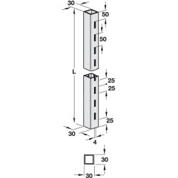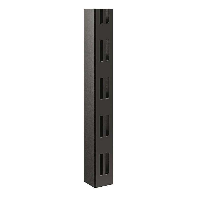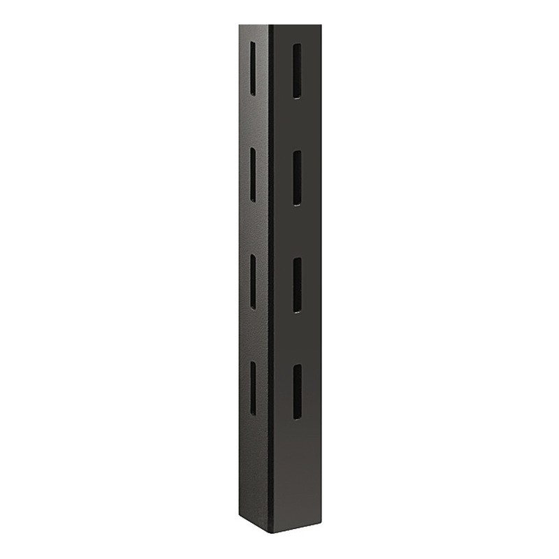 Firkantet søjle 30 x 30 mm til vores smarte byg-selv-reolsystem. Skinnen er produceret i stål og har en pulverlakeret sort overflade.