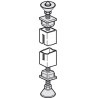 Søjlemontage til firkantet søjle 30 x 30 mm. Dette beslag bruges til at montere søjlen til gulv og loft. Beslaget består af to dele; en del til montage af søjle i loftet, og en del til montage af søjlen til gulvet.